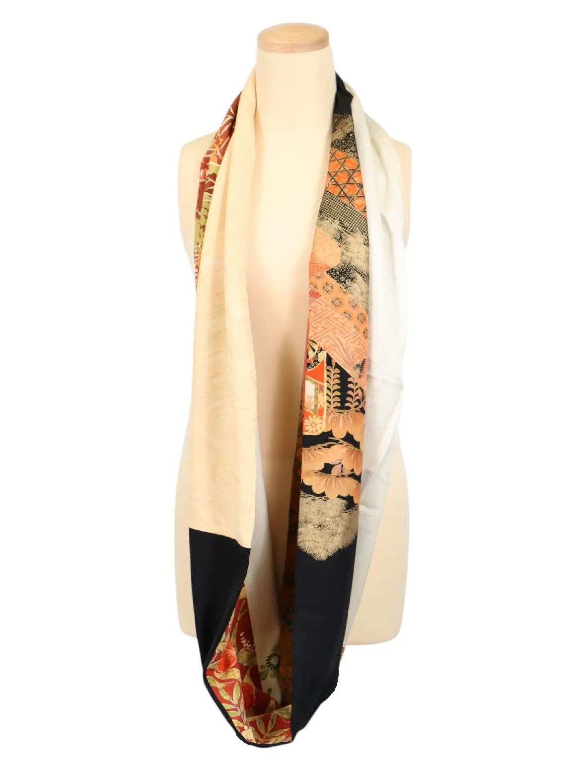 着物ワンピースドレスの製作で生まれた端布を活かし、シルクの上質な風合いをそのまま纏えるストールに仕立てました。