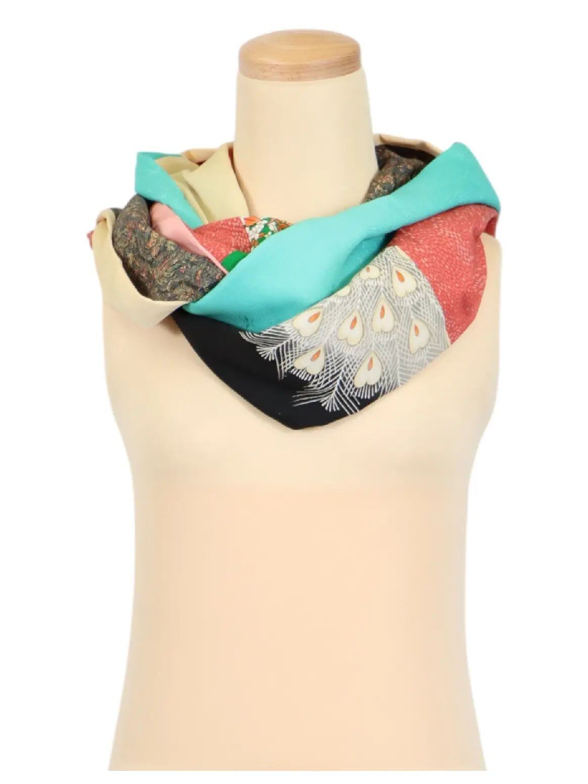 着物ワンピースドレスの製作で生まれた端布を活かし、シルクの上質な風合いをそのまま纏えるストールに仕立てました。