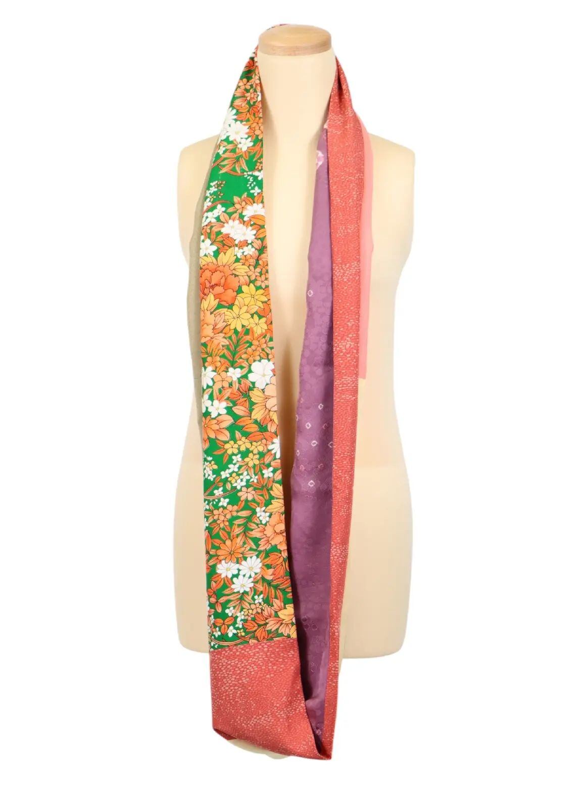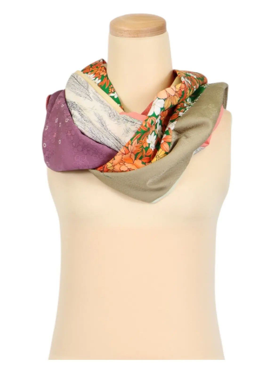 着物ワンピースドレスの製作で生まれた端布を活かし、シルクの上質な風合いをそのまま纏えるストールに仕立てました。