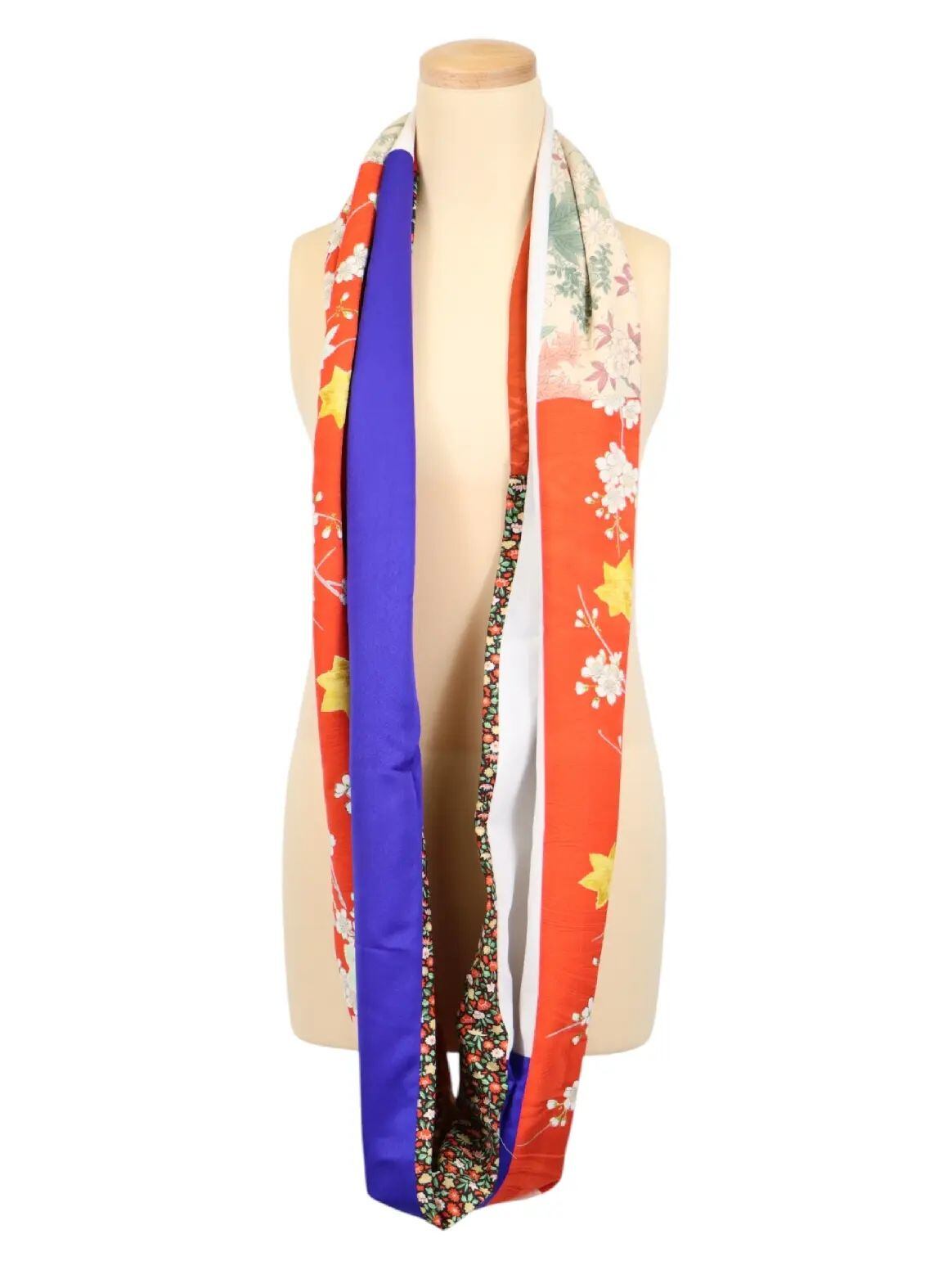 着物ワンピースドレスの製作で生まれた端布を活かし、シルクの上質な風合いをそのまま纏えるストールに仕立てました。