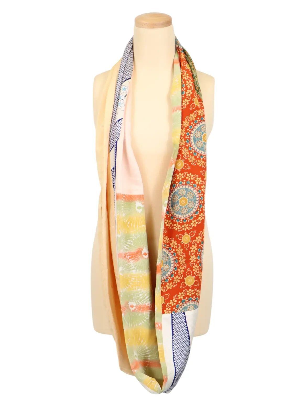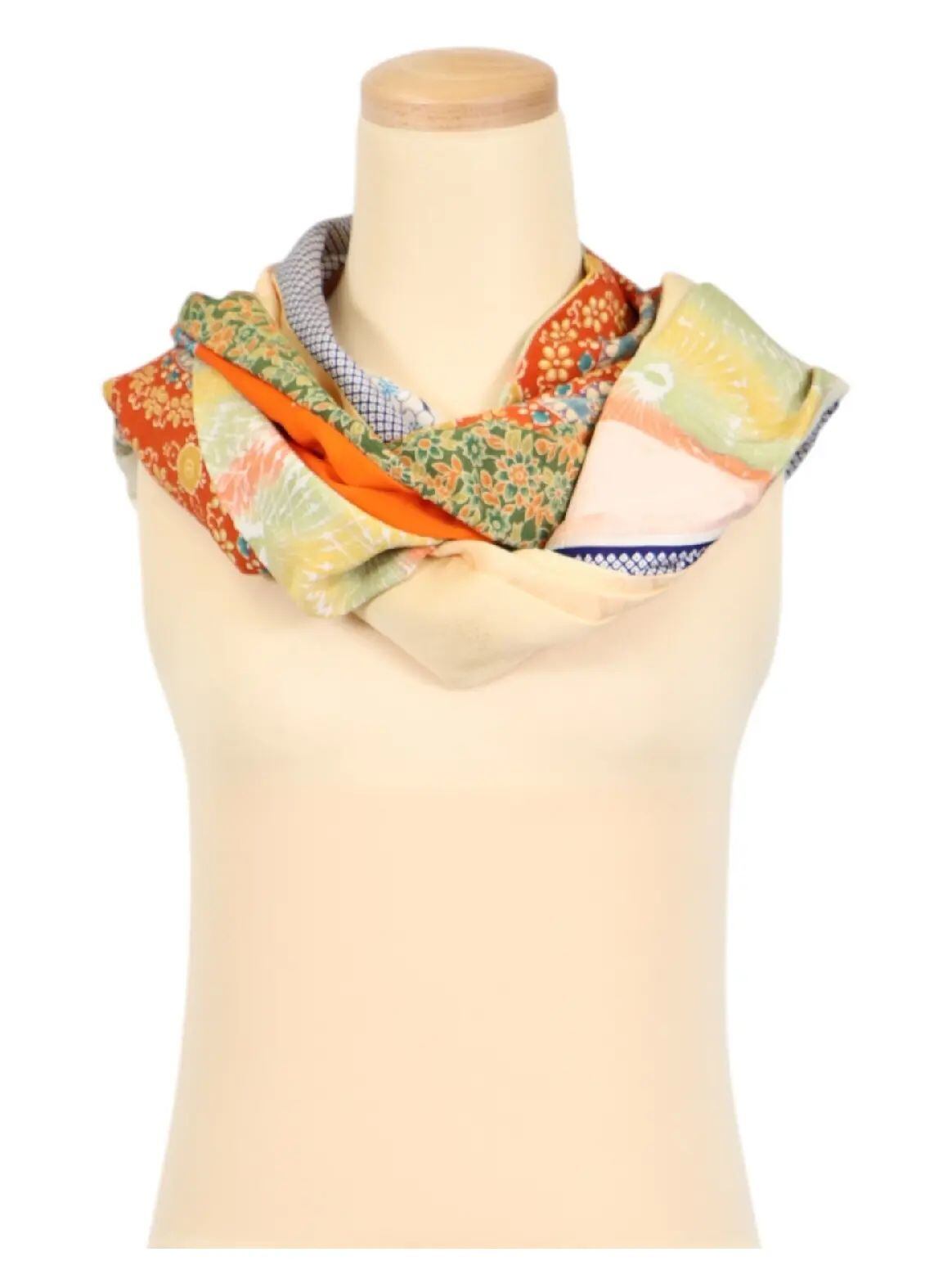 着物ワンピースドレスの製作で生まれた端布を活かし、シルクの上質な風合いをそのまま纏えるストールに仕立てました。