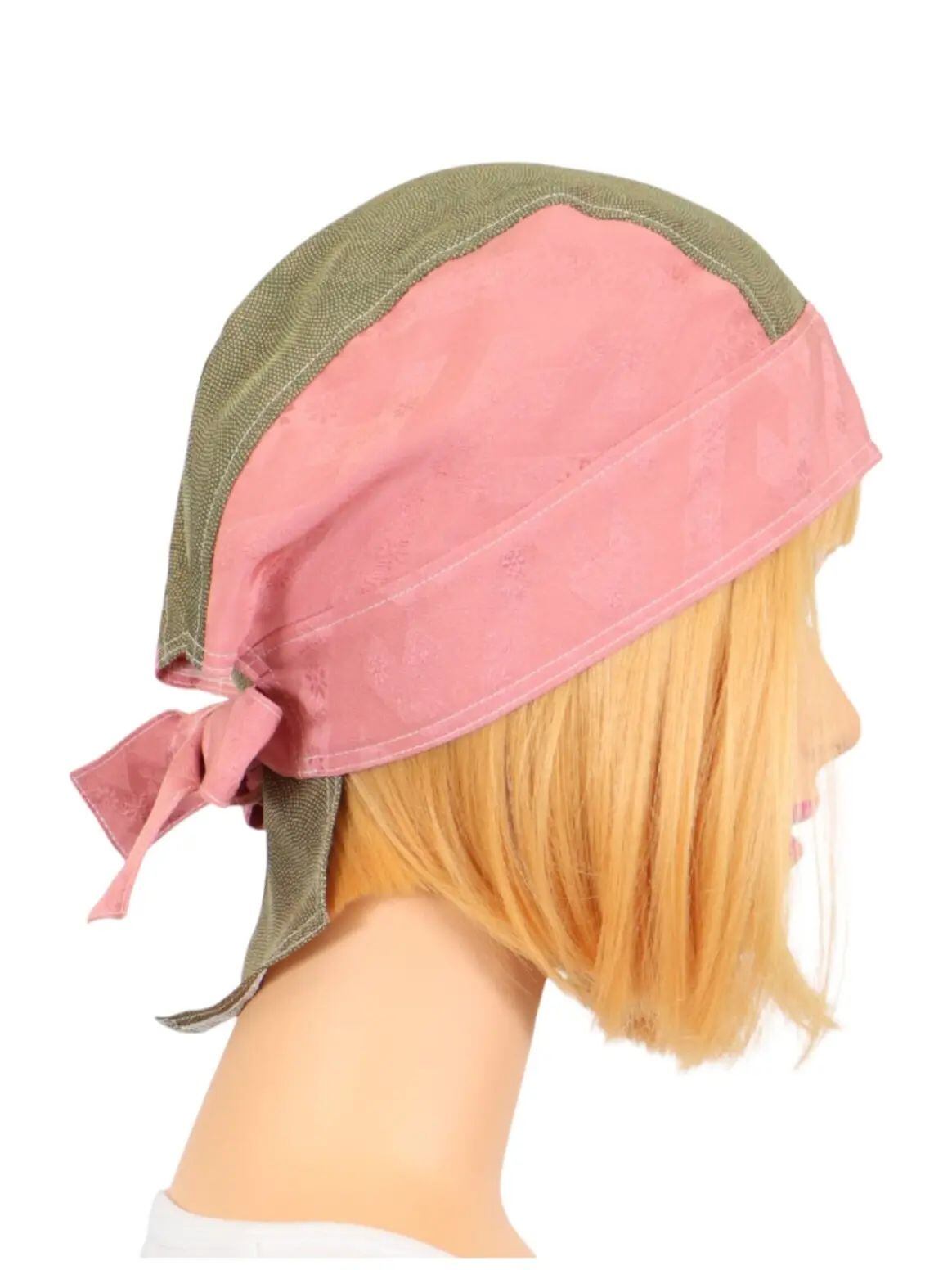 その端布から生まれた着物バンダナキャップは、シルクならではの軽やかさと通気性を活かしたユニセックス仕様。