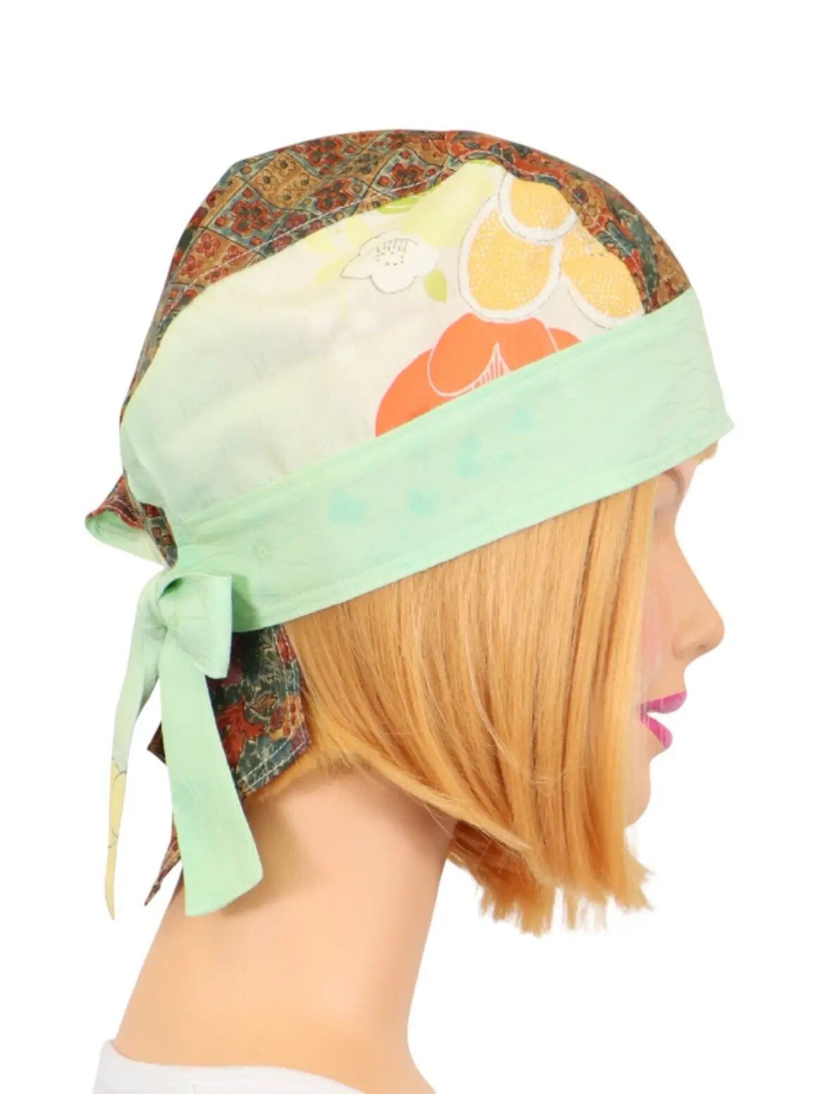 その端布から生まれた着物バンダナキャップは、シルクならではの軽やかさと通気性を活かしたユニセックス仕様。