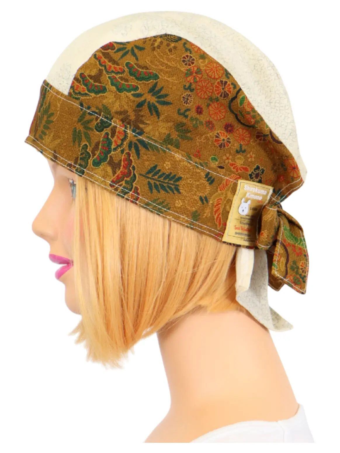 その端布から生まれた着物バンダナキャップは、シルクならではの軽やかさと通気性を活かしたユニセックス仕様。